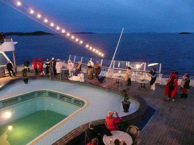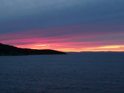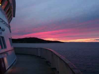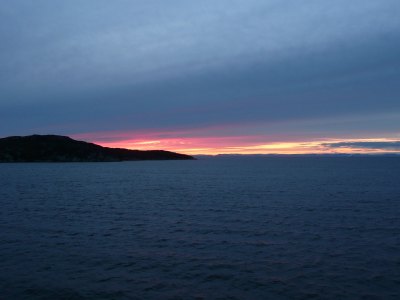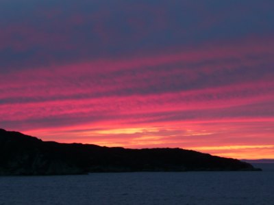 Gegen 21Uhr erstrahlte der Himmel in der Diskobucht in seinen schönsten Farben und dieses wunderschöne Schauspiel ließ viele Passagiere an Deck staunen und fotographieren.