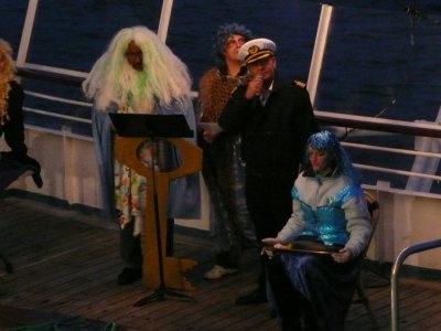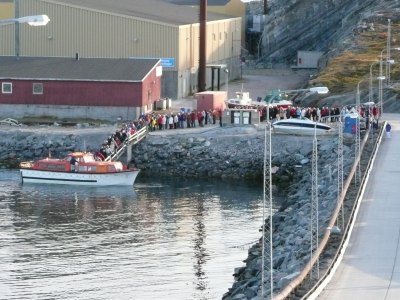 Die Nacht lagen wir auf Reede vor Qasigiannguit und so konnte auch unser Kapitän Hansen bei der abendlichen Polartaufe teilnehmen.