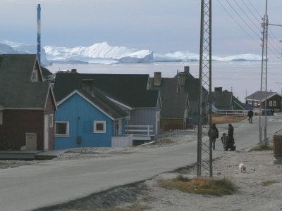 Es ist schon ein besonderer Anblick, dass man Eisberge hinter Häusern sieht, wenn man eine Straße entlang geht.