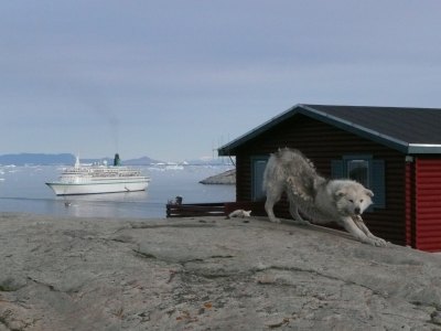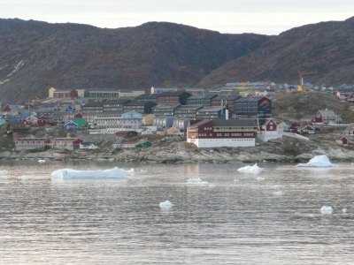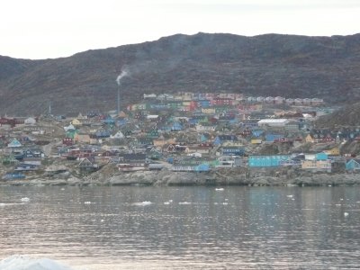 Nach der eindrucksvollen Fahrt entlang der Eisgrenze des Eisfjordes erreichten wir gegen 7.30Uhr Ilulissat (dän. Jacobshavn). Dies ist Grönlands drittgrößte Stadt und hat etwa 5.000 Einwohner. Der Ort liegt rund 2 km nördlich von der Mündung des 56km langen Ilulissat-Eisfjords (Jakobshavn Isfjord). Dieser ist der Abfluss des aktivsten Gletschers der Nordhalbkugel - Sermeq Kujalleq. Übersetzt bedeutet das grönländische Wort "Ilulissat" Eisberge.