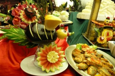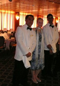 Unsere Kellner Ericson und James, der jeden Tag uns mit seinem Lächeln verzauberte sowie Chefkoch Silvio Richter aus dem thüringischen Gera.