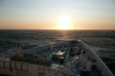 Der heutige Tag präsentierte sich mit bestem Wetter und passend zum alternativen Tagesspruch vom Kreuzfahrtdirektor Michael von Ousterhout "Mit Schwung in den Tag kommen" rollte unser Schiff von links nach rechts. Wir erlebten Seestärke 5 und Wind mit einer Stärke von 4-5 Beaufort.