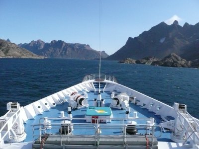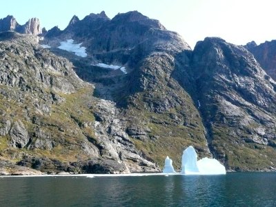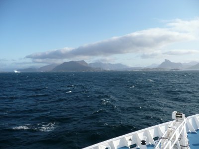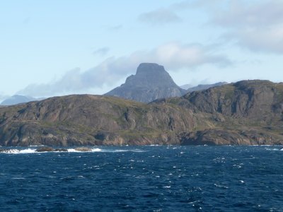 Ab 9Uhr passierten wir an Backbord in Sichtweite die Grönländische Küste, welche aus schroffen Felsen bestand.