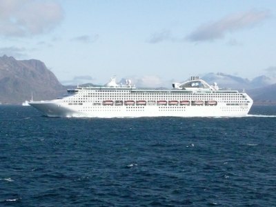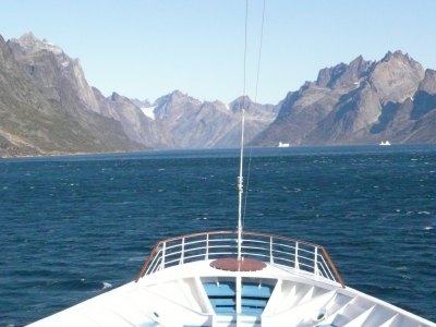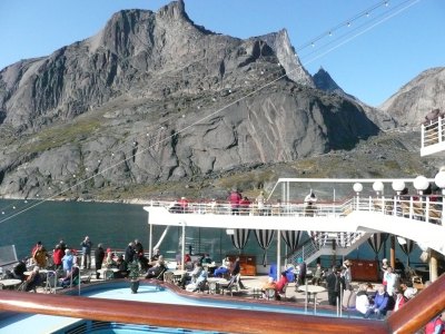 Bevor wir in die Sundlandschaft von Südgrönland einbogen, trafen wir das Kreuzfahrtschiff Sea Pricess.
