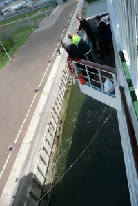 Um 13Uhr fuhren wir endlich in die Schleuse ein. Für mich war es die erste Schleusung und Kanaldurchfahrt.