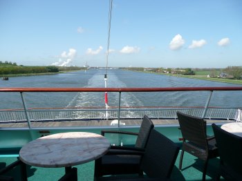Die Fahrt durch den Kanal dauerte etwa 1,5h, die wir auf den achteren Außendecks genossen. Wir passierten Bauernhöfe, Industrieanlagen, grüne Wiesen und kleine Orte - wunderschön vor allem bei dem strahlenden Sonnenschein.