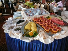 Beim Frühstück im Restaurant Vier Jahreszeiten ließen wir es uns beim Blick aus den großzügigen Fenstern schmecken.