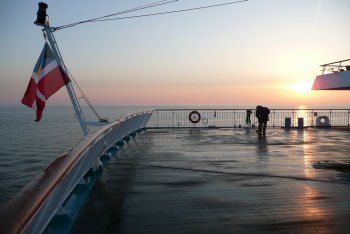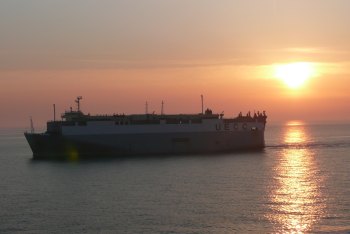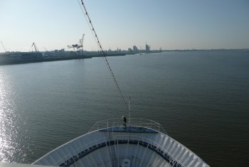 Noch vor Sonnenaufgang übernahmen wir um 5.30Uhr den Lotsen vor der Wesermündung.