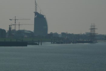 Da wir ordentlich Fahrt gemacht hatten, kamen wir bereits gegen 8.30Uhr in Bremerhaven an. Zuvor passierten wir noch die bei Niedrigwasser freiliegenden Sandflächen und ich sah einige wenige Seehunde in der Sonne liegen.