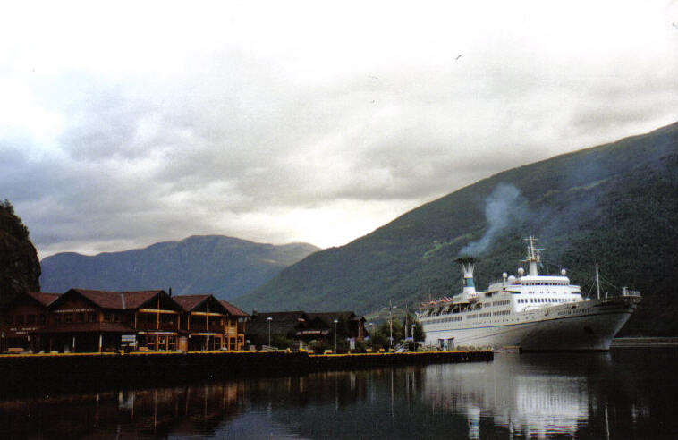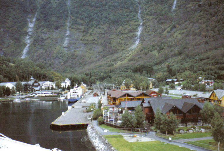 Pünktlich um 7Uhr erreichten wir Flam. Da Morgenstund bekanntlich Gold im Mund hat, stieg ich als einer der ersten Passagiere aus, um den kleinen Ort zu erkunden. Dabei konnte ich die Ruhe genießen sowie einen schönen Sonnenaufgang hinter den Bergen bewundern. Flam ist ein kleiner Ort, der von hohen Bergen umsäumt ist, an deren Hängen kleine Wasserfälle gen Tal strömen.