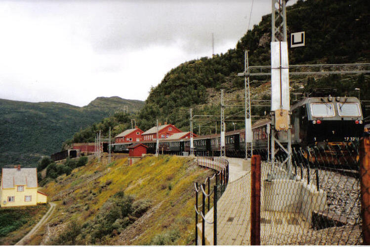 Gegen 9Uhr startete dann mein erster Ausflug. Mit der berühmten Flambahn von Flam nach Myrdal. Die Fahrt dauerte ca. 2,5h und war sehr sehenswert. Unterwegs hielt der Zug beim Wasserfall "Kjosfossen", um dann kurze Zeit später in den kleinen Bahnhof von Myrdal einzufahren. Hier kann man in den Zug nach Bergen umsteigen.