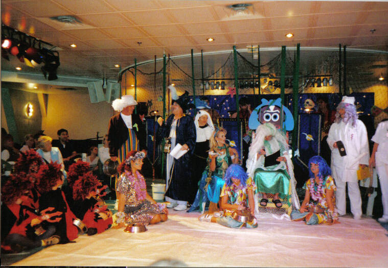 Der heutige Tag stand ganz im Zeichen der Polartaufe, die um 11.30Uhr im Musiksalon stattfand. Dabei begrüßten wir Neptun samt Gefolge, der dem Staff Captain symbolisch den Schlüssel zum Nordmeer überreichte. Weiterhin wurden sämtliche Gäste untersucht, gestempelt sowie mit lauterem Wasser gereinigt. Es war ein Spaß für Groß und Klein, denn zunächst wurde man mit Zuckerwasser neu frisiert, anschließend gab es einen kräftigen Schluck Wodka. Danach küsste man den von Thetis gehaltenen echten Fisch, um danach mit Eiswasser bespritzt zu werden. Selbstverständlich gab es auch für diese Strapazen eine Urkunde (auf Urkunde klicken).