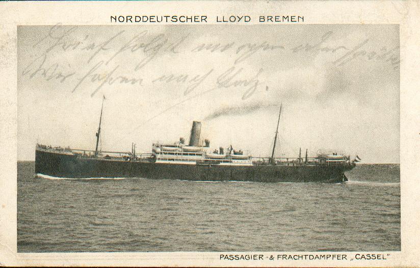 Am 7.Oktober 1911 fuhr die Cassel zum ersten Mal von Bremerhaven nach Australien und am 8.Oktober 1913 nach Boston.
