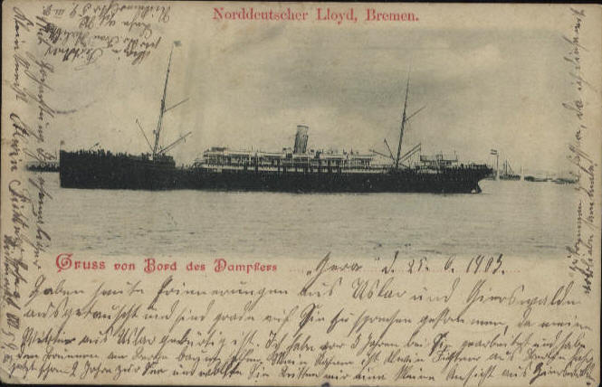 Am 2.April 1891 fuhr sie zum ersten Mal von Bremerhaven nach Baltimore und am 19.Juli 1893 absolvierte sie ihre erste Fahrt nach Shanghai. Am 22.November 1893 fuhr sie nach Sydney. Danach fuhr sie immer mal auf allen genannten Routen.