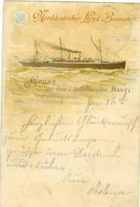 Ihr Stapellauf erfolgte am 30.August 1890 und ihre Jungfernfahrt von Bremen über Southampton nach New York erfolgte am 5.Februar 1891. Das letzte Mal fuhr sie als Havel am 19.April 1898 diese Route. Anschließend wurde sie an Spanien verkauft und in einen bewaffneten Kreuzer umgebaut und in Meteoro umbenannt. Dabei wurde der ihr der dritte Mast entfernt.