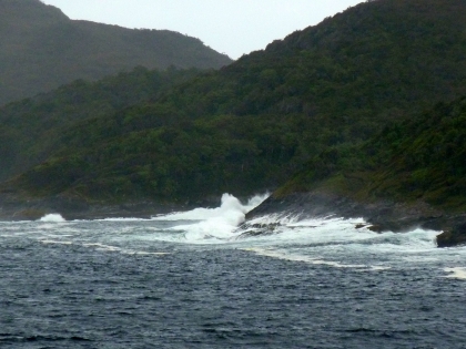 Je näher wir dem Pazifik kamen, um so mehr verspürte man auf dem Schiff ein leichtes Schwanken. Die Brandung an den vorgelagerten kleinen Inseln war deutlich zu sehen.