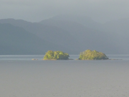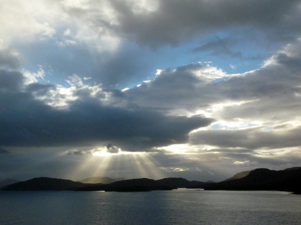 Etwa auf der Hälfte bogen wir um 7Uhr in den Canal Ninualac ein, den wir die folgenden 2h befuhren. Dabei passierten wir die Inseln James und Melchior. Glücklicherweise schaute zwischendurch die Sonne durch die dichten Wolken und bot einmalig schöne Lichtblicke...