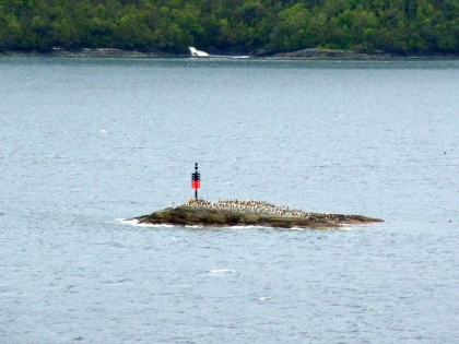 Während der Passage sahen wir Robben, viele Seevögel und Lachsfarmen.