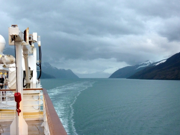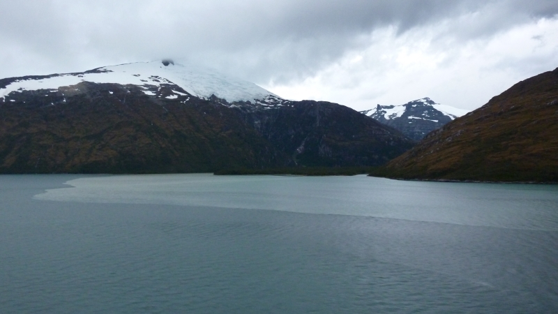 Nach einer größeren Biegung blickte ich zurück in den Beagle Kanal der malerisch von schneebedeckten Bergen umrahmt ist.