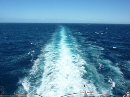 Draußen besserte sich das Wetter merklich und strahlender Sonnenschein verwandelte das vorher schwarzblaue Wasser in türkis-blau.