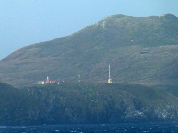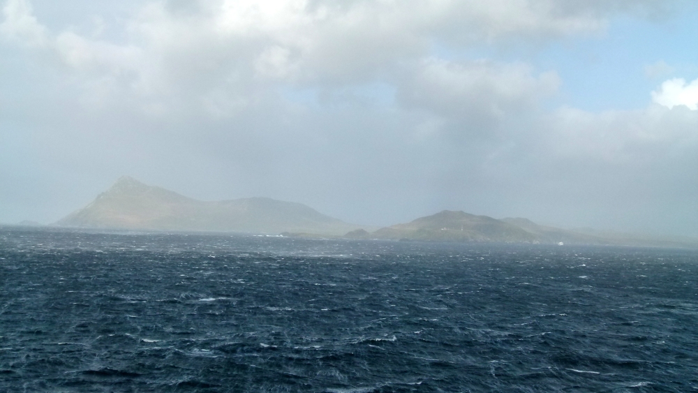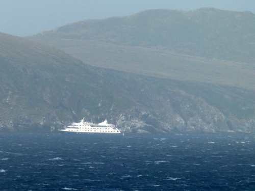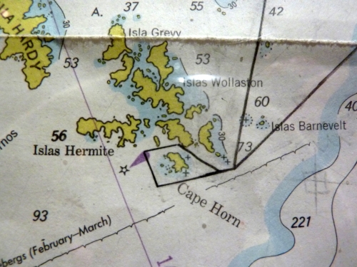 Wir passierten gegen 6.40Uhr einige Felsen und konnten gegen 7.15Uhr trotz des diesigem Wetters die Konturen eines Schiffes sowie der Leutturmstation von Kap Horn ausmachen.