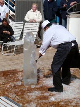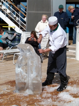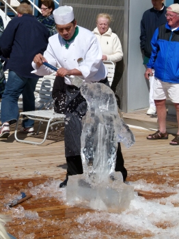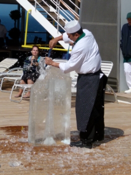 Am Pool fand um 15.45Uhr das Eisskulpturen schnitzen statt. Immer wieder toll anzusehen, wie aus einem großen Eisblock eine filigran gearbeitete Figur entsteht.