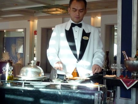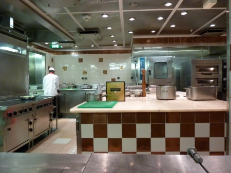 Zum Schluss gelangten wir in die Küche des Spezialitätenrestaurants United States. Der Chefkoch erklärte, dass hier alles vor den Augen der gäste gekocht wird. An Hand der Gästeliste, die er zeigte, sei das Restaurant heute ausgebucht. Für uns eine große Freude hatten wir doch heute hier gebucht und werden hier dinieren.