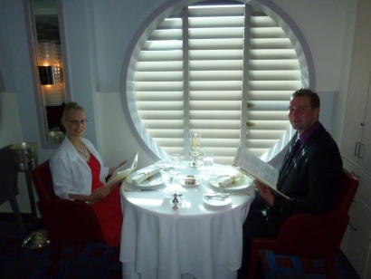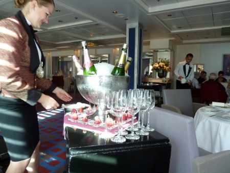Den Champagner mit Erdbeere wählten wir anhand des bestaussehendsten Etiketts aus, so etwas hatten wir beide noch nciht getrunken und die rumänische Kellnerin hatte mit uns sichtlichen Spass. Und wir hinterher mit der Rechnung - 1 Glas für umgerechnet 21Euro - wir tranken 4. trotzdem kaufte ich mir zu Hause übers Internet eine Flasche des edlen Tropfens.