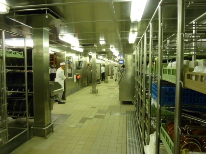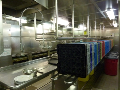 Zunächst wird das Geschirr grob gereinigt bevor es in eine gigantische Waschstraße geht.