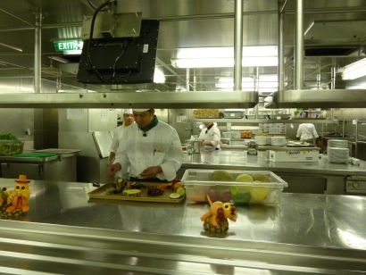 Am heutigen Vormittag stand eine Küchenbesichtigung auf dem Programm. Die deutschsprachige Hostess übersetzte die Worte eines Chefkoches.