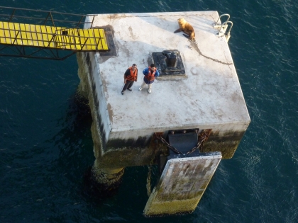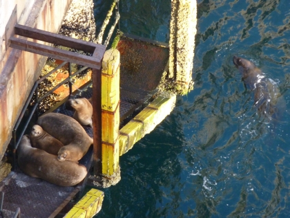Gegen 7Uhr beginnt das Anlegemanöver, welches von neugierigen Seelöwen argwöhnisch beobachtet wird.