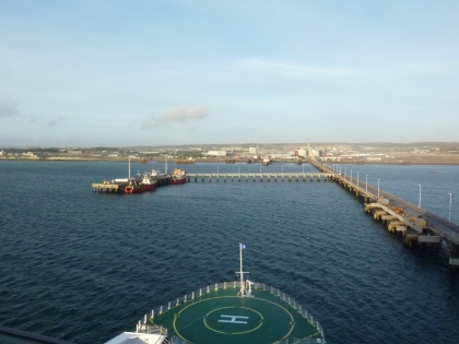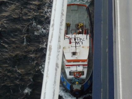Kurz darauf kam auch schon das Lotsenboot längsseits, um uns sicher an die Pier zu bringen.