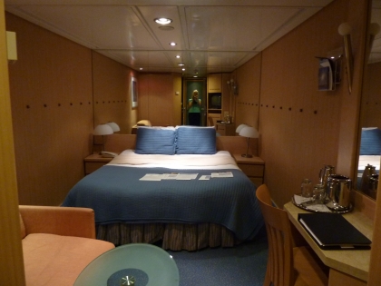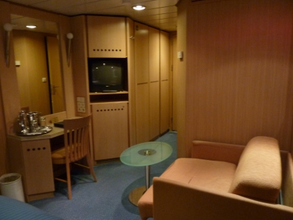 Unsere Kabine war die 2128 auf Deck 2 mittschiffs. Wider erwarten hatten wir sehr viel Stauraum in den Schränken - ich hatte sogar noch Platz. Einzigstes Manko war für mich, dass die Koffer nicht unter dem Bett zu verstauen waren.