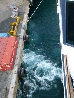 Um 13.45Uhr warteten wir bereits am Aufgang auf den Hafenbus, der uns zum Schiff bringen sollte.