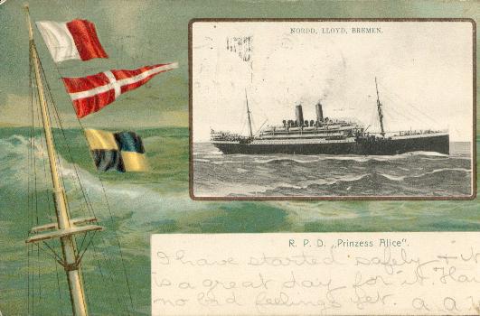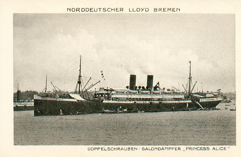 1903 zog sich die HAPAG aus dem Gemeinschaftsdienst mit dem Lloyd zurück. Beide Reedereien schlossen ein Übereinkommen, wonach der Lloyd den Reichspostdampferdienst und die HAPAG den Frachtdienst wieder für sich allein betrieben. Die HAPAG übergab am 20.Februar 1904 die Kiautschou an den Lloyd und erhielt dafür fünf Frachter mit zusammen 20700 BRT. Die Kiautschou wurde in Princess Alice umbenannt. Sie sollte von Bremerhaven in den Fernen Osten fahren und von April bis Juni 1904 diente sie auf der Bremen – New York Route.