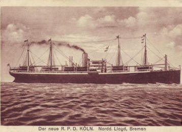 Der Dampfer Köln des NDL wurde 1921 von der Bremer Vulkan Werft gebaut, um es im La Plata Dienst einzusetzen. Das Schiff besaß einen Schornstein und vier Masten sowie Durchschnittsgeschwindigkeit von 12,5 Kn. Sie konnte 270 2.Klasse Passagiere und 752 3.Klasse Passagiere beherbergen.
