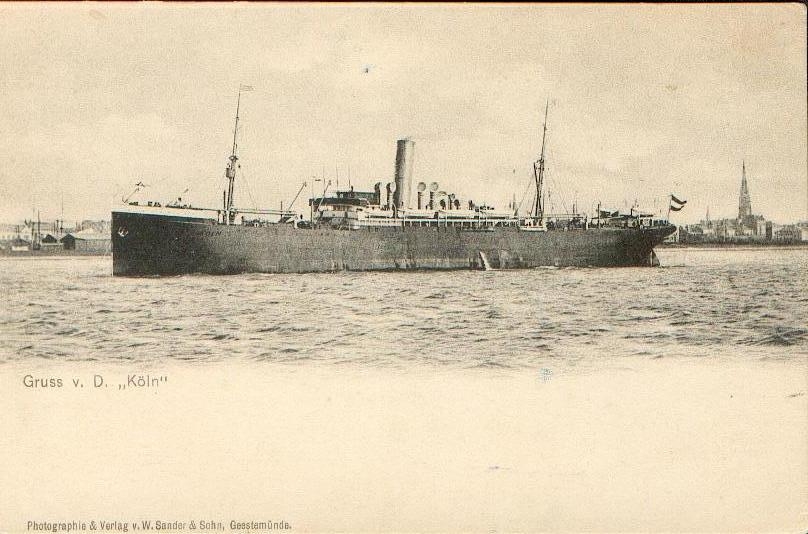 Die Köln besaß einen Schornstein, zwei Masten sowie eine Geschwindigkeit von 13Kn. Sie konnte 120 2.Klasse und 1850 3.Klasse Passagiere beherbergen.