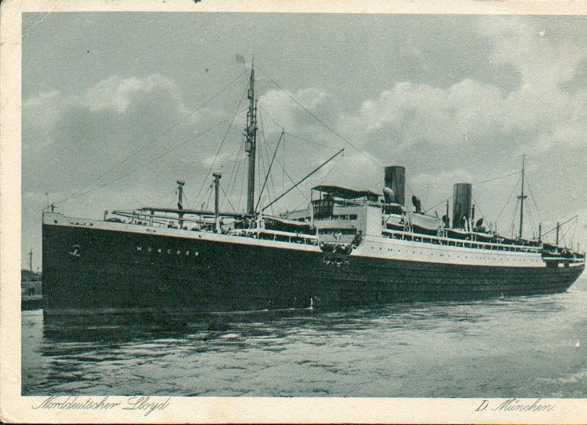 Die deutsche Handelsmarine stand nach dem verlorenen Ersten Weltkrieg durch Versenkungen und Auslieferung an die siegreichen Alliierten vor dem Nichts. Außer der völlig veralteten Deutschland verfügten die Deutschen über kein nennenswertes Schiff mehr. Einer der ersten Neubauten für den Norddeutschen Lloyd waren die München und ihr Schwesterschiff Stuttgart, die beide für den Nordatlantikservice vorgesehen waren. Der Stapellauf erfolgte a, 25. November 1922 und am 21. Juni 1923 brach sie zu ihrer Jungfernfahrt von Bremen nach New York auf. Das Schiff besaß zwei Masten und zwei Schornsteine.