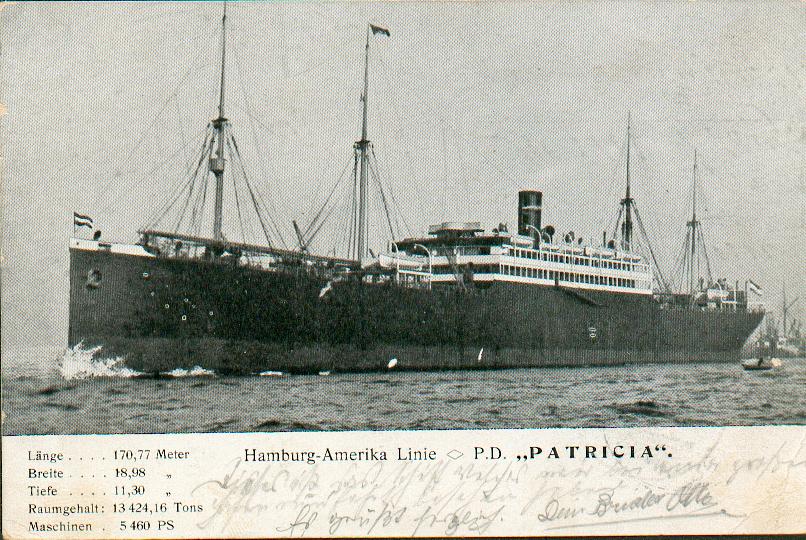 Die Patricia wurde auf der Stettiner Vulcan-Werft für die HAPAG gebaut und am 20.Februar 1899 vom Stapel gelassen.