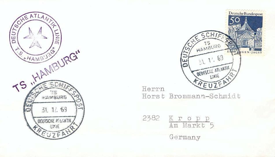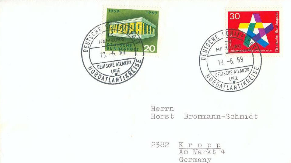 Deutsche Schiffspost Nordatlantikreise 19.06.1969