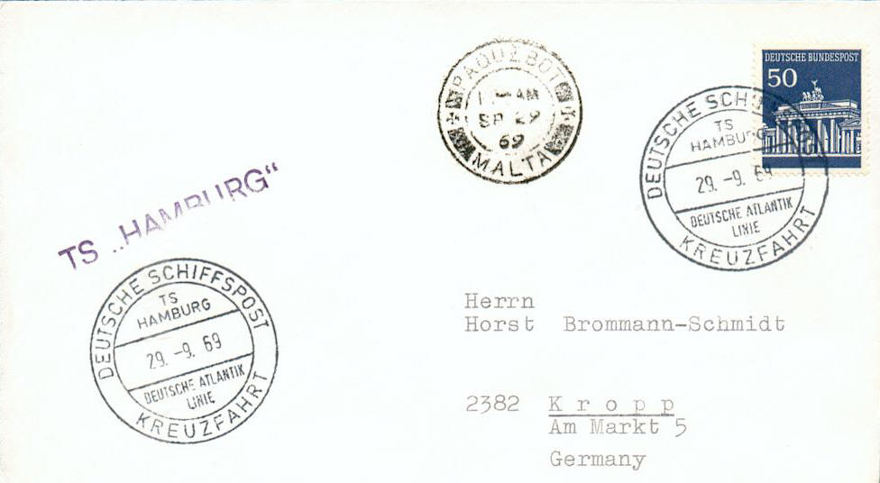 Deutsche Schiffspost (Paquebot) Malta 29.09.1969