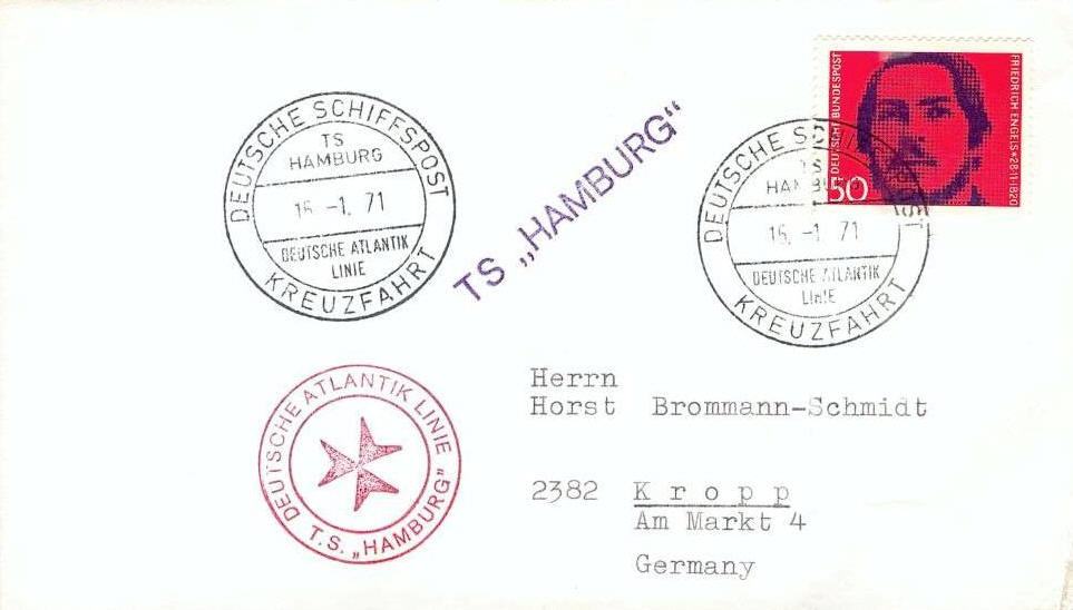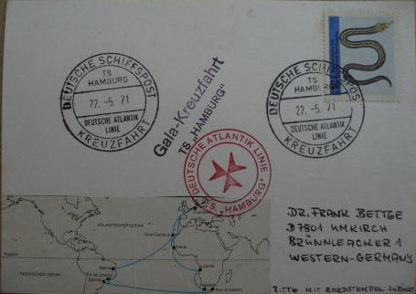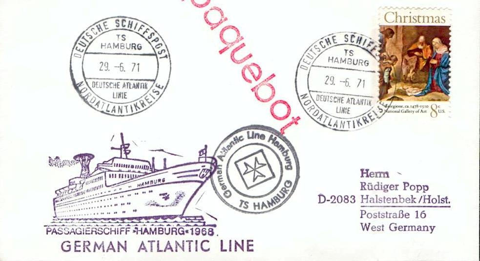 Deutsche Schiffspost Nordatlantikreise 29.06.1971