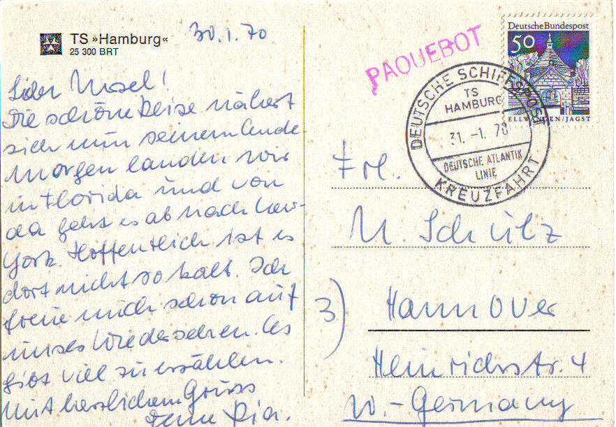 Deutsche Schiffspost (Paquebot) 31.01.1970