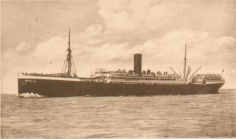 Am 3.August 1914 war die Seydlitz Richtung Sydney ausgelaufen, aber auf Grund des 1.Weltkrieges nahm es Kurs auf Valparaiso. Dort wurde es als Hilfsschiff des Kreuzergeschwaders Graf Spee in betrieb genommen. Am 28.Dezember 1914 wurde die Seydlitz in San Antonio interniert.