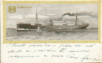 Die Galicia war für den Kosmos-Dienst (Westküste Amerikas) gebaut worden. Sie besaß einen Schornstein und zwei Masten. Sie konnte 44 1.Klase, 28 2.Klasse sowie 44 3.Klasse Passagiere beherbergen.