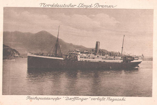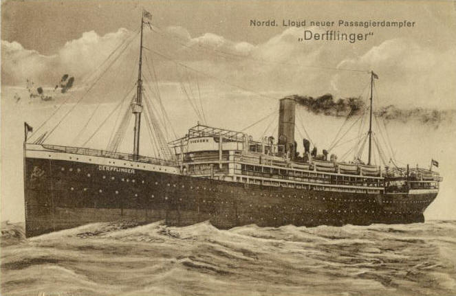 Der Dampfer Derfflinger gehörte zur Feldherren-Klasse des NDL. Die Schwesternschiffe waren u.a. die Lützow, Prinz Eitel Friedrich, Prinz Ludwig und Goeben. Das Schiff besaß zwei Masten, einen Schornstein sowie eine Geschwindigkeit von 14 Kn. An Bord fanden 75 1.Klasse, 107 2.Klasse , 132 3.Klasse und 1919 Zwischendeckspassagiere platz.