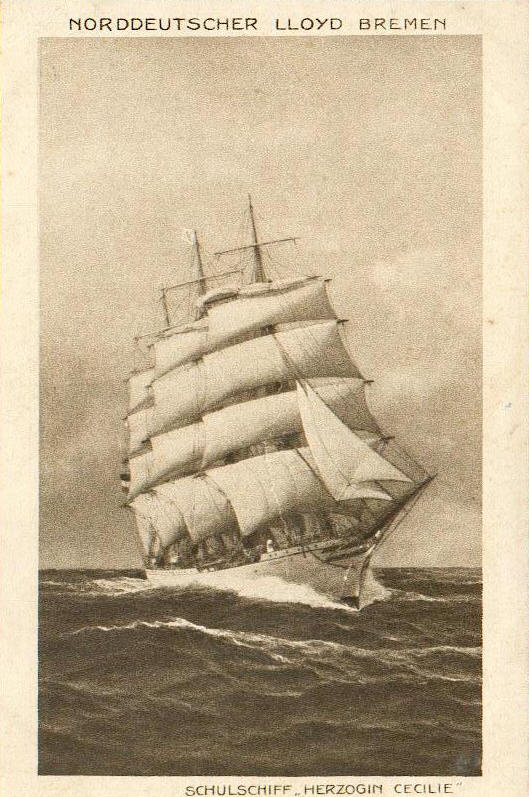 Die Viermastbark Herzogin Cecilie gehörte neben der Herzogin Sophie Charlotte zu den Segelschulschiffen des NDL. Das Schiff besaß eine Segelfläche von 3530 m² und konnte 81 Mann einschließlich Kadetten beherbergen. Der Stapellauf erfolgte am 22.April 1902 und am 25.Juni trat sie ihre erste Ausbildungsreise an.